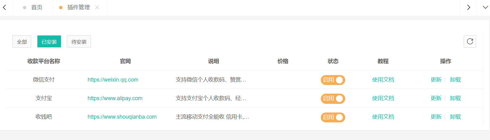 插件管理頁(yè)面